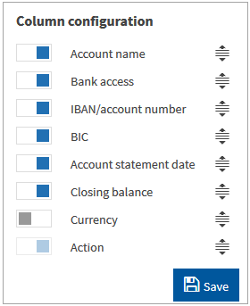 For most lists, you can define which columns of the list shall be displayed and at which position. Besides, you can change the column width in these so-called configurable lists. The button