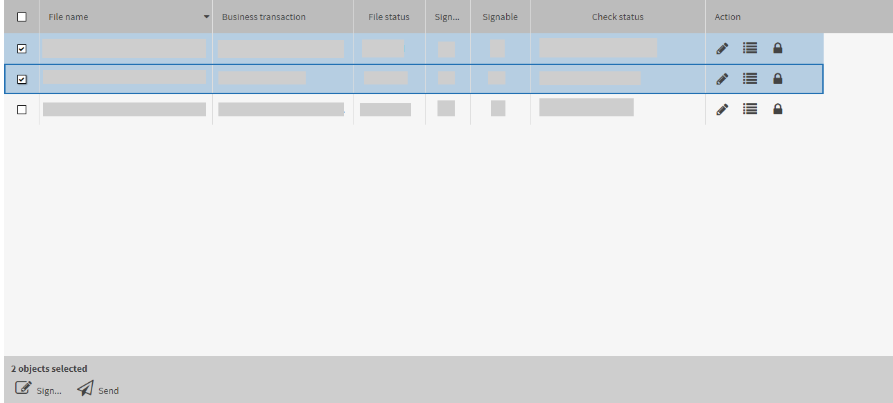 If you want to edit multiple entries from a list (for example, bank messages) in one step, use the related checkboxes for a multiple selection.