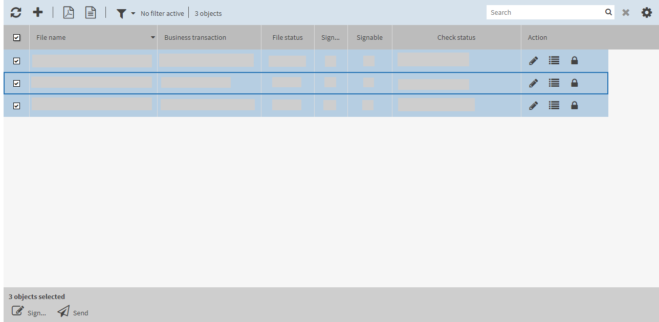To further process all selected list entries, select a button below the checkboxes. Depending on the mask, several buttons may be displayed from which you can select one.