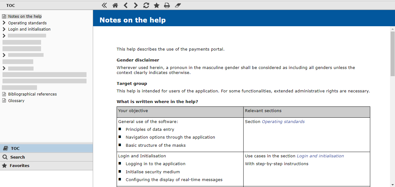 The following table describes the navigation options via the symbols in the left frame: