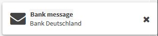 In the workspace the application displays important information in a pop-up element that you should see in a timely manner, for example, that a new bank message or an instant payments notification has been received. You do not have to confirm or close the pop-up elements. They are automatically closed after a few seconds. When you click on the pop-up element, you are redirected to the relevant mask.