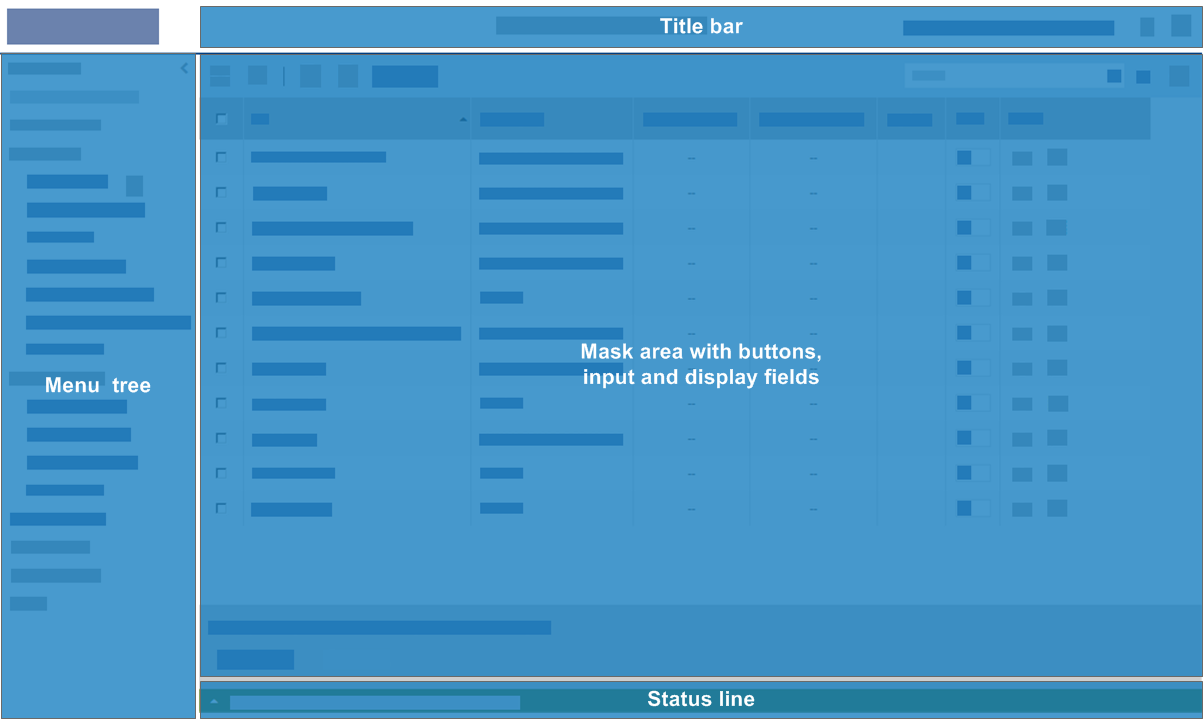 In the workspace, the current mask with its input and display fields and the mask-specific buttons are displayed.